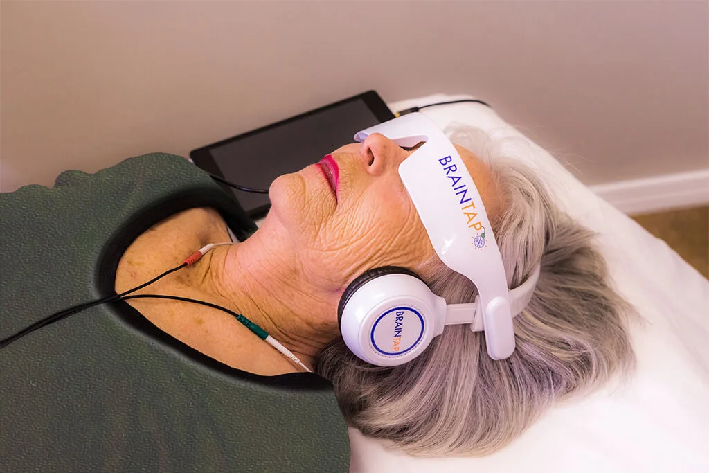 BrainTap in California is a non-invasive therapy that uses guided meditation, gentle light pulses, and sound frequencies to help your brain relax and reset. The BrainTap headset is designed to guide you into a meditative state, making it easier to manage stress and improve mental clarity. Many people in California choose BrainTap as part of their routine to support overall wellness and mental balance.